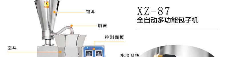 XZ-87包子機,可生產各種肉包、菜包、肉菜包、小籠包、湯包、水晶包、圓饅頭、奶黃包、豆沙包、叉燒包、南瓜餅、煎堆等十幾種包餡制品。適用于賓館、飯店、學校、機關企業食堂、饅頭或包子加工廠、早餐工程店及速凍食品廠等單位。可滿足不同客戶群體。免費提供工藝技術。免費上門培訓指導安裝。