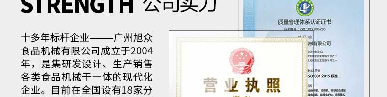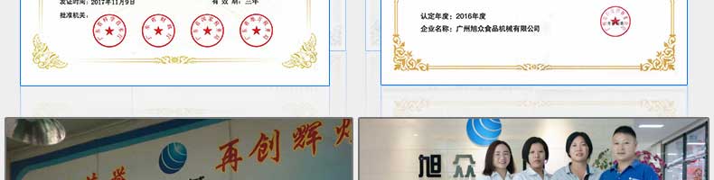廣州旭眾食品機械有限公司是一家集科研開發(fā),生產設計,營銷服務為一體的現(xiàn)代化生產企業(yè)。現(xiàn)代化生產車間,精湛制造技術,所產機械歷經市場重重考驗,不斷贏得海內外客戶的贊譽。