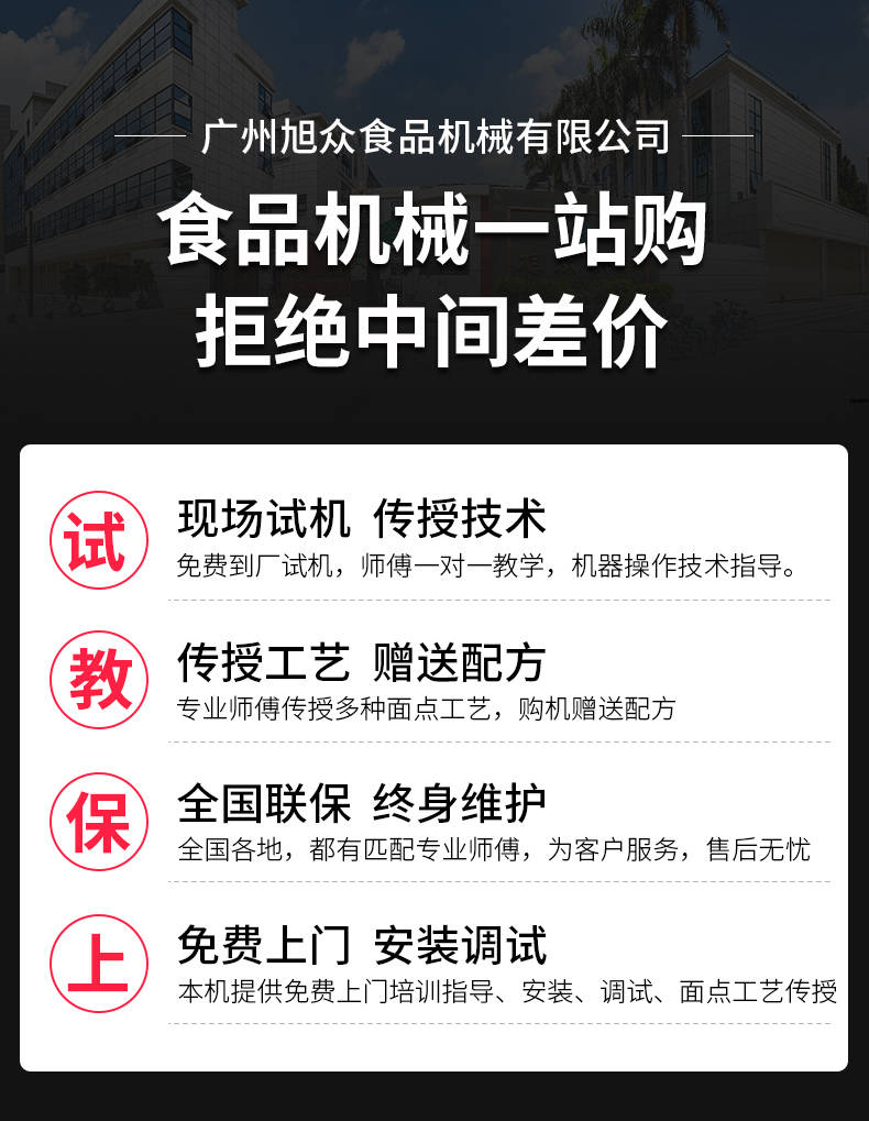 廣州旭眾食品機械有限公司是一家集科研開發,生產設計,營銷服務為一體的現代化生產企業。現代化生產車間,精湛制造技術,所產機械歷經市場重重考驗,不斷贏得海內外客戶的贊譽。