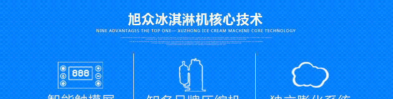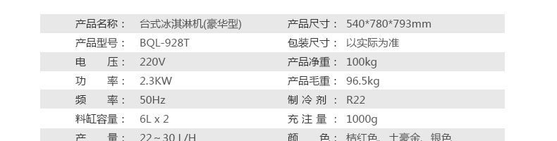 BQL-928T臺(tái)式冰淇淋機(jī),1.選用國(guó)際牌壓縮機(jī),輔以旭眾精湛工藝,大大縮短冰淇淋成型時(shí)間,高效節(jié)能;2.全新液晶智能觸控面板,簡(jiǎn)單明了,多功能易操作;3.全新升級(jí)專(zhuān)業(yè)膨化泵,膨化率高,產(chǎn)量增加30%;4.一鍵清洗功能,省時(shí)方便;5.主要部件采用不銹鋼材質(zhì),時(shí)尚美觀,持久耐用;6.先進(jìn)的機(jī)械攪拌系統(tǒng),機(jī)器運(yùn)行穩(wěn)定可靠,低噪音,產(chǎn)品口感爽滑細(xì)嫩。