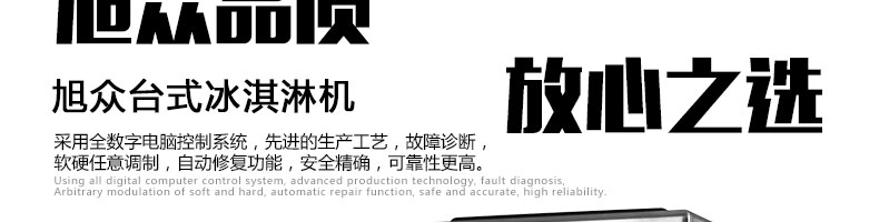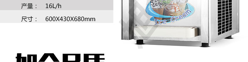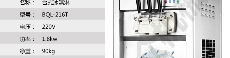BQL-216T臺式冰淇淋機,●選用國際名牌成熟制冷配套件和高效壓縮機,融合旭眾精湛工藝輔以嚴(yán)格的質(zhì)量控制流程,使產(chǎn)品整體性能及品質(zhì)得以全面提升。●采用全數(shù)字電腦控制系統(tǒng),選用名牌優(yōu)質(zhì)電器元件,先進的生產(chǎn)工藝,故障診斷,軟硬任意調(diào)制,自動修復(fù)功能,安全精確,可靠性更高。●專業(yè)成熟制冷系統(tǒng)設(shè)計,選用世界名牌大功率專用壓縮機,大大縮短冰淇淋成型時間,相同時間內(nèi)冰淇淋產(chǎn)量大幅度增加,使您生意火爆時依然得心應(yīng)手,為您創(chuàng)造財富。●安全平穩(wěn)的機械攪拌系統(tǒng),噪音更低、振動更小,使整機運行性能達到國際先進水平。●確保進料溫度在0°C~35°C;環(huán)境溫度5°C~40°C勻可正常使用。