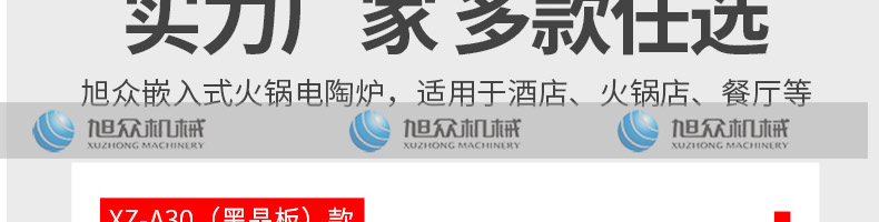 嵌入式電陶爐XZ-A30,實力廠家·采用高品質零配件。廠家直銷,售后無憂。廣州旭眾食品機械有限公司是集研發設計、生產銷售于一體的現代化企業。一站式購機,無中間差價。
