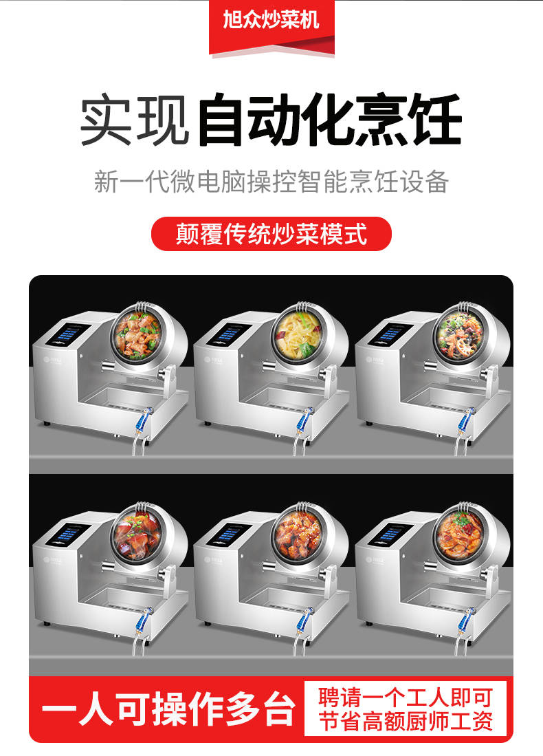 XZ-30TCP臺(tái)式300智能電磁炒菜機(jī)(觸屏+噴料),可以實(shí)現(xiàn)自動(dòng)化烹飪過(guò)程的智能化設(shè)備,語(yǔ)音播報(bào)、自動(dòng)噴料、旋轉(zhuǎn)翻炒、快速出菜。實(shí)現(xiàn)自動(dòng)化烹飪,新一代微電腦操控智能烹飪?cè)O(shè)備、顛覆傳統(tǒng)炒菜模式。5000W猛火爆炒美食更鮮香
