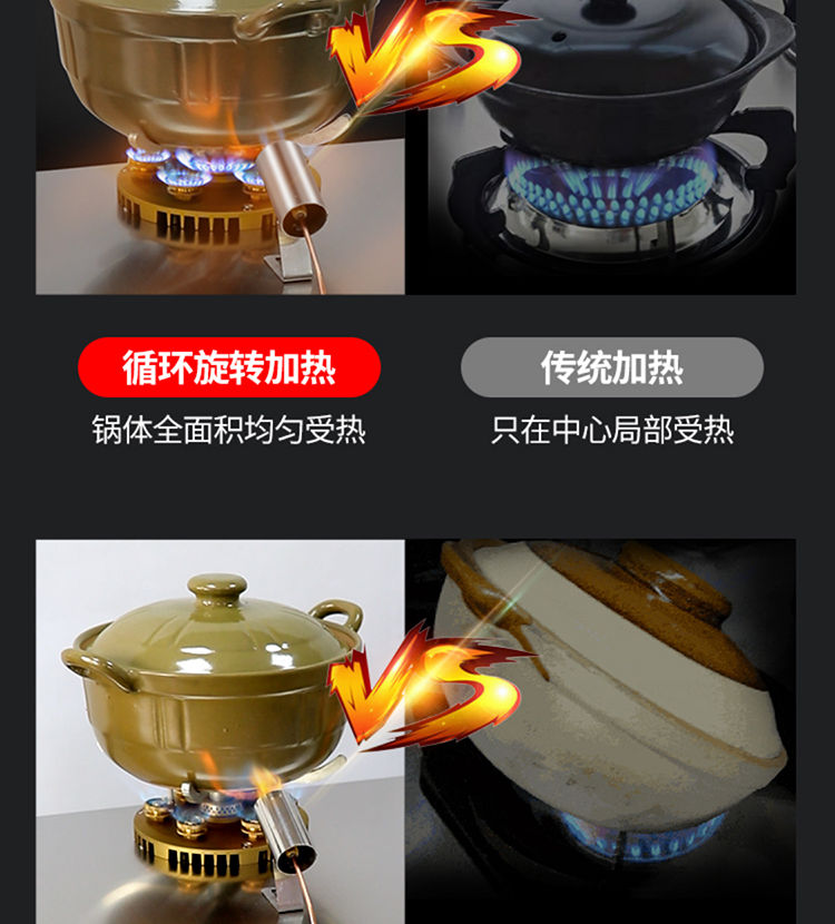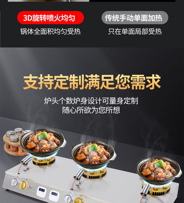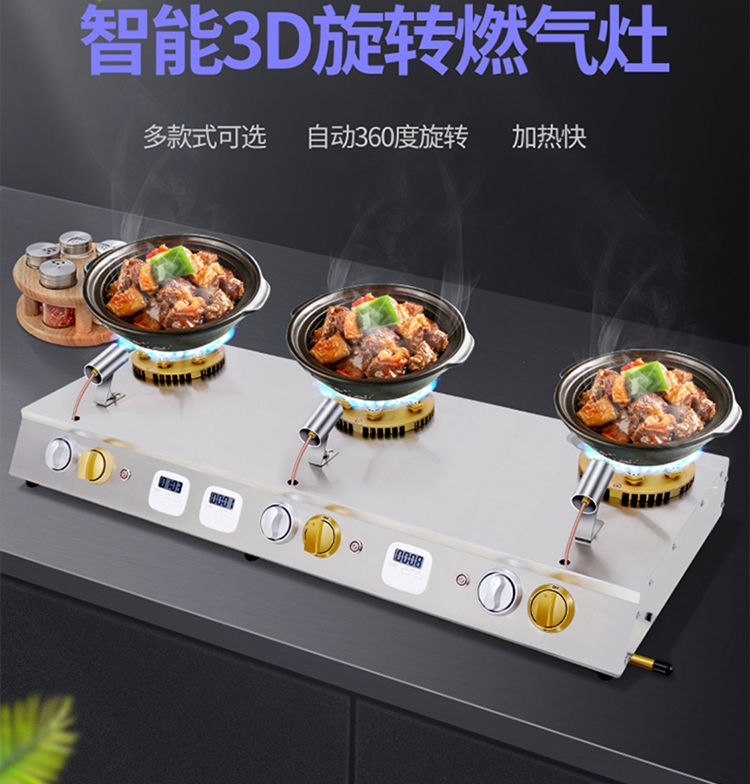 智能煲仔-爐商用四頭六眼旋轉韓式猛火灶-砂鍋灶燃氣灶,