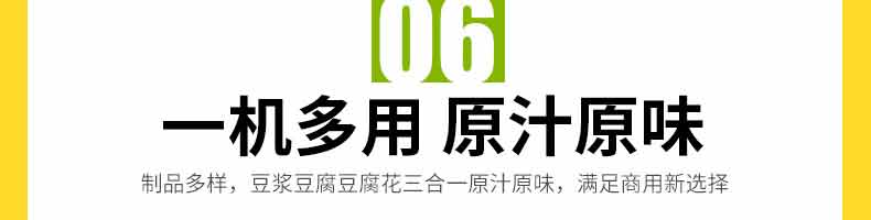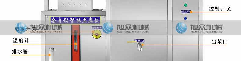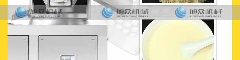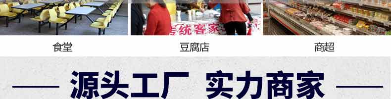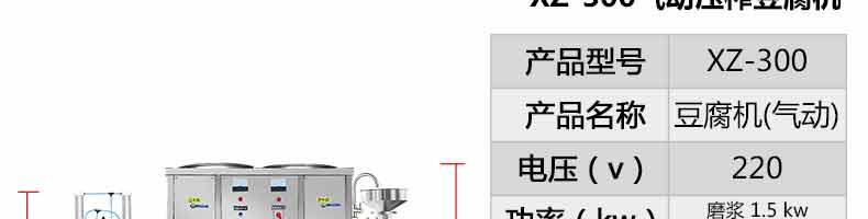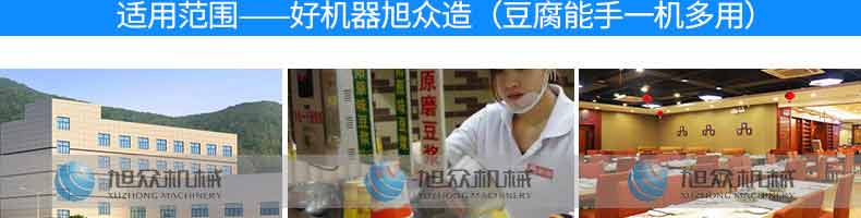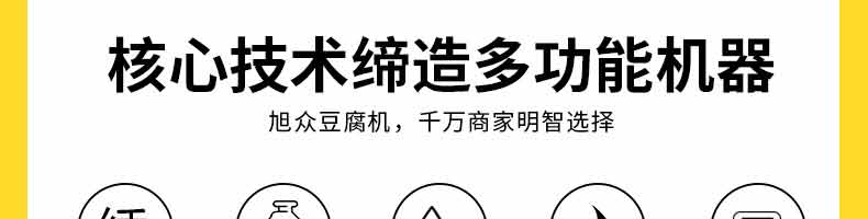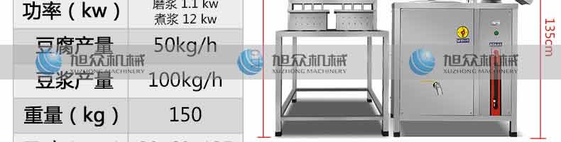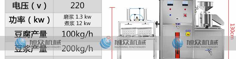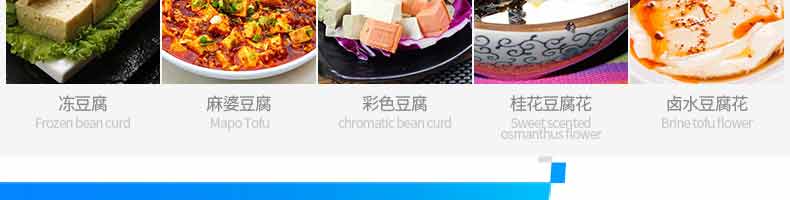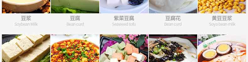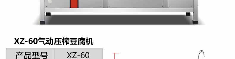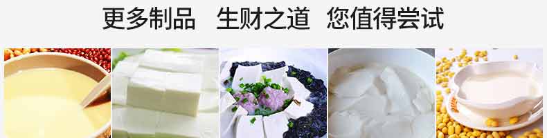 XZ-60智能豆腐機,一機多用:可生產(chǎn)豆腐系列產(chǎn)品:單色(嫩,老)豆腐、多彩豆 腐、單色豆腐皮、多色豆腐皮、彩色豆腐干、豆?jié){、豆花等豆制品制作,還可以與其他設備和工藝配套生 產(chǎn)更多的豆制品。