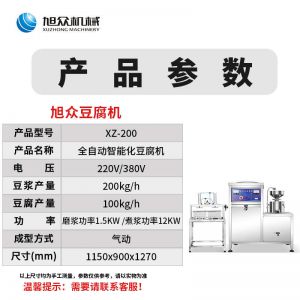 XZ-300型氣動壓榨豆腐機,智能豆腐豆漿機,雙桶煮漿高效生產現磨現煮,漿渣分離快速出漿。機器運行穩定不銹鋼材質打造,堅固耐用,安全衛生,時尚大方,易于清洗。