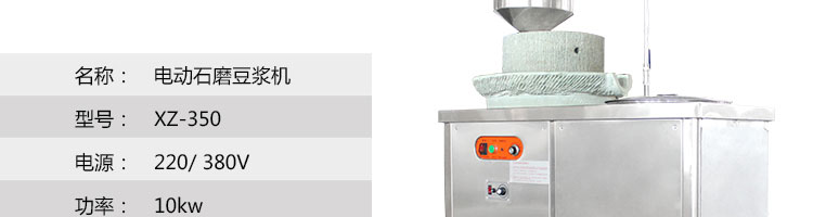 XZ-350型電動石磨豆漿機,適用于制作豆漿;豆漿還含有鐵、鈣等礦物質,尤其是其所含的鈣,雖不及豆腐,但比其他任何乳類都高,非常適合于各種人群,包括老人、成年人和青少年等等。