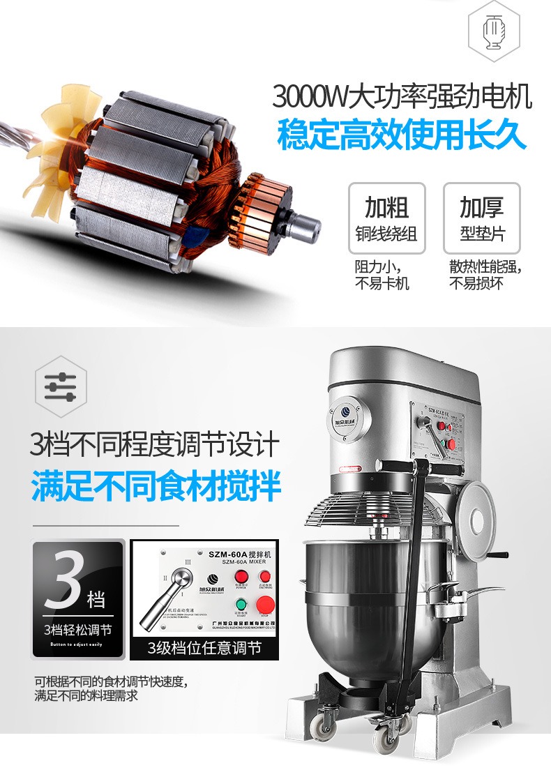 多功能攪拌和面機,創業神器,開創廚房新時代。多功能高效率,讓您省心省力又省事。360行星軌跡攪打系統,攪拌均勻保持口感。3000W大功率強勁電機,穩定高效使用長久。