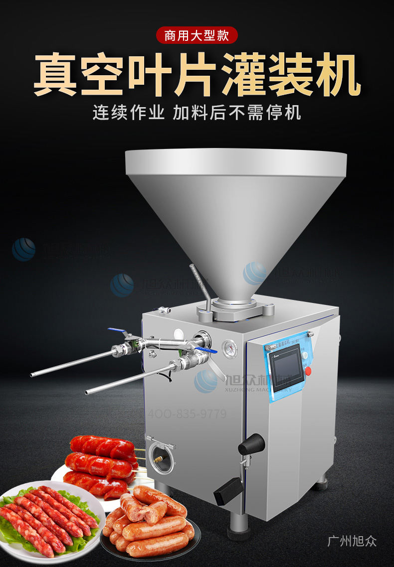 XZ-ZKG2800真空灌腸機,真空葉片灌裝機連續作業加料后不需停機,可灌肉粒&肉糜實用性強灌各種腸可做烤腸、親親腸、廣式臘腸、火鍋腸等連續灌制長腸。