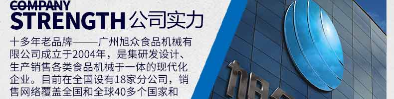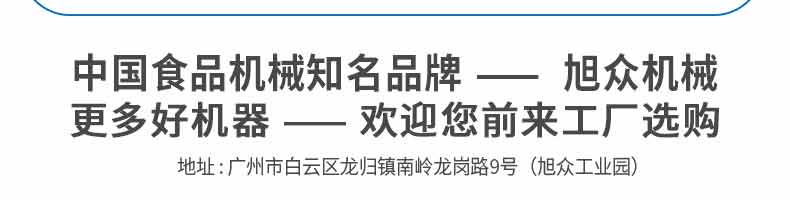 廣州旭眾食品機械有限公司是一家集科研開發,生產設計,營銷服務為一體的現代化生產企業。現代化生產車間,精湛制造技術,所產機械歷經市場重重考驗,不斷贏得海內外客戶的贊譽。