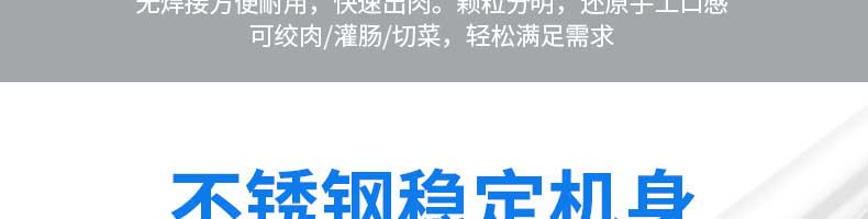 XZL-32A絞肉機,快速絞肉它做得到。告別單一,多項功能,絞肉絞菜灌腸輕松搞定。機身小巧使用便利,是廚房的理想之選絞餡無壓力,適合餐廳,飯店,酒店等場所使用無焊接方便耐用,快速出肉。顆粒分明,還原手工口感可絞肉/灌腸/切菜,輕松滿足需求。