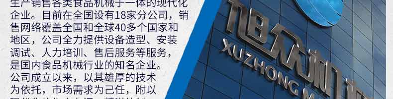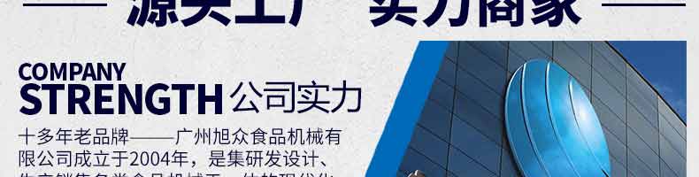 廣州旭眾食品機械有限公司是一家集科研開發,生產設計,營銷服務為一體的現代化生產企業。現代化生產車間,精湛制造技術,所產機械歷經市場重重考驗,不斷贏得海內外客戶的贊譽。