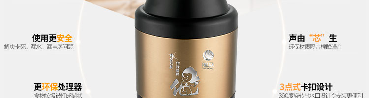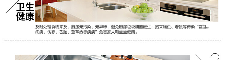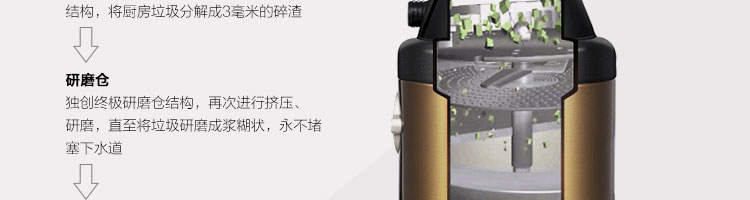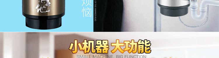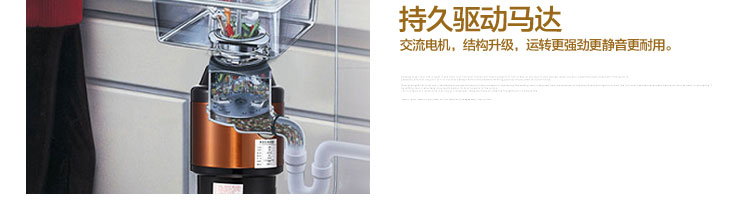 ACLQ56-廚房垃圾處理器,該機器是靠內(nèi)部結(jié)構(gòu)、零件組合達(dá)到處理垃圾的效果,通過碾、壓、擠、磨等系統(tǒng)的處理,在十幾秒內(nèi)安全將食物垃圾處理成小于3毫米的顆粒,隨著水流排入下水道,使用十分安全。