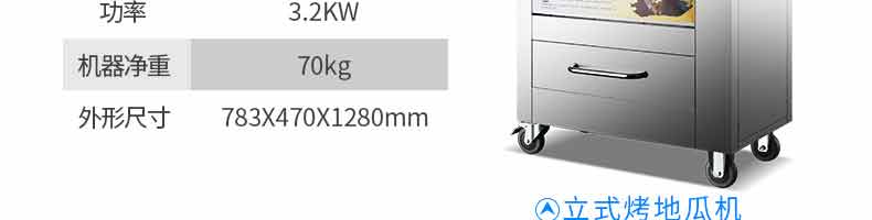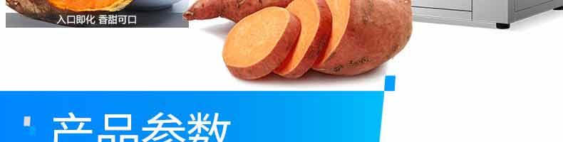名稱臺式地瓜機 電源220V 功率2.0KW,3.2KW 產量 尺寸620*500*680mm,783*470*1280mm 重量41KG,70KG 規格 其他
