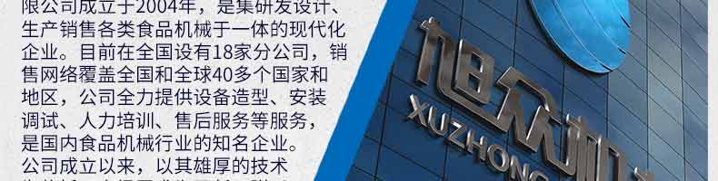 廣州旭眾食品機械有限公司是一家集科研開發,生產設計,營銷服務為一體的現代化生產企業。現代化生產車間,精湛制造技術,所產機械歷經市場重重考驗,不斷贏得海內外客戶的贊譽。
