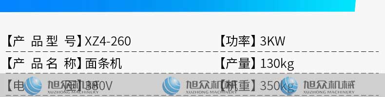 名稱XZ4-260面條機 電源380V 功率3KW 產量130kg 尺寸900x700x1400mm 重量350kg 規格聯系銷售員 其他