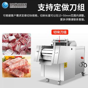 名稱XZW-130禽肉類剁塊機 電源220V/380 功率3.5KW/1.5KW 產量效率600kg/h 尺寸1300X700x850mm 重量260kg 規格切塊規格:可定做 其他
