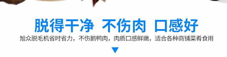 鵝鴨型脫毛機,本機用于雞、鴨、鵝宰殺后的自動脫毛,還可用于脫姜皮、脫馬鈴薯皮、脫魚鱗等農產品。本機操作簡單,省力、省時間、工作效率相當于十多個人的手工勞動。
