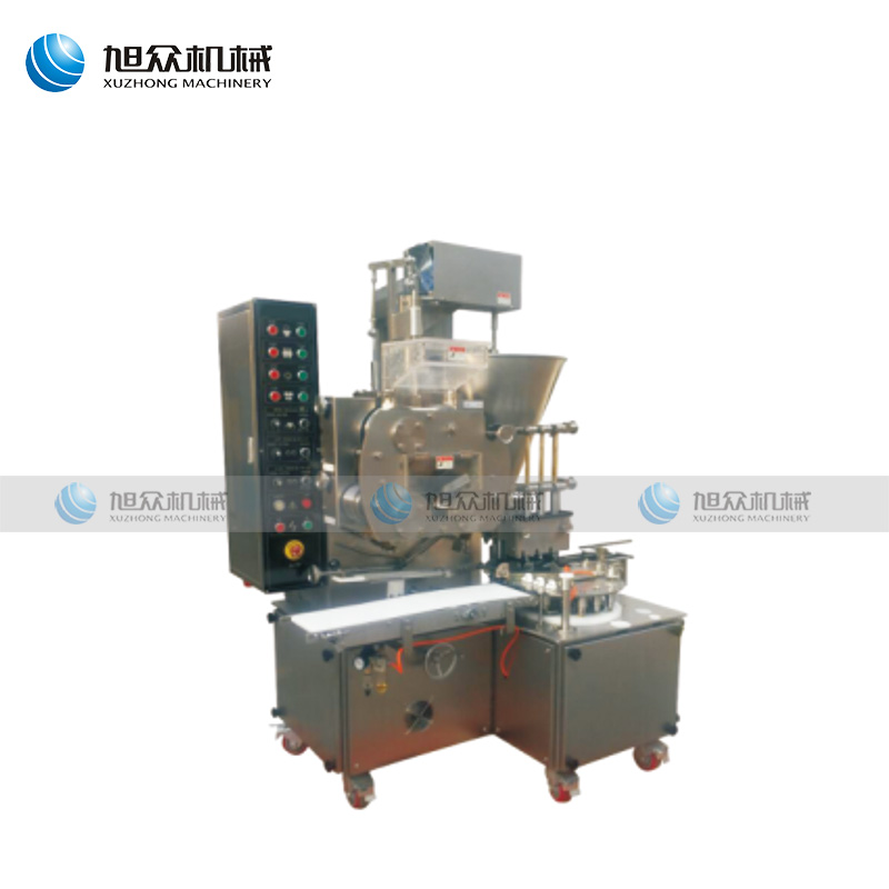 JGB-800S全自動三聯燒麥機,獨特的設計,只要將面及館放進面斗和桶內開動機器就自動制成面幫并壓海、拉皮、切、填充、成型并拔送到輸送帶上一次完成。燒賣餡量多寡及值皮海厚皆可調整,產品規格整齊。
