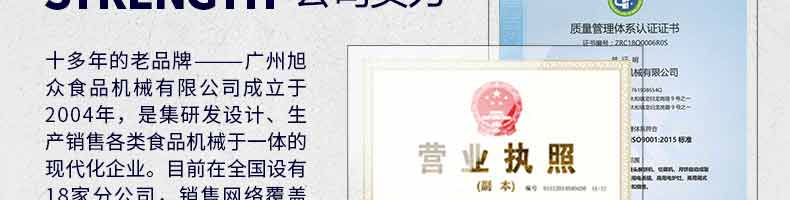 廣州旭眾食品機械有限公司是一家集科研開發,生產設計,營銷服務為一體的現代化生產企業。現代化生產車間,精湛制造技術,所產機械歷經市場重重考驗,不斷贏得海內外客戶的贊譽。