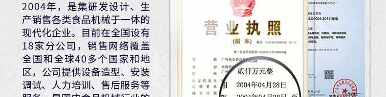 廣州旭眾食品機(jī)械有限公司是一家集科研開(kāi)發(fā),生產(chǎn)設(shè)計(jì),營(yíng)銷服務(wù)為一體的現(xiàn)代化生產(chǎn)企業(yè)。現(xiàn)代化生產(chǎn)車間,精湛制造技術(shù),所產(chǎn)機(jī)械歷經(jīng)市場(chǎng)重重考驗(yàn),不斷贏得海內(nèi)外客戶的贊譽(yù)。