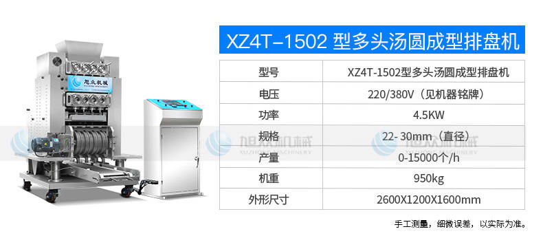 XZ4T -1502多頭湯圓成型排盤機(jī),湯圓機(jī),本機(jī)只要將面團(tuán)放入進(jìn)料口,開機(jī)便可自動(dòng)搓圓、成型的設(shè)備,一次性成型四次產(chǎn)品,制品不易變形,工作效率高