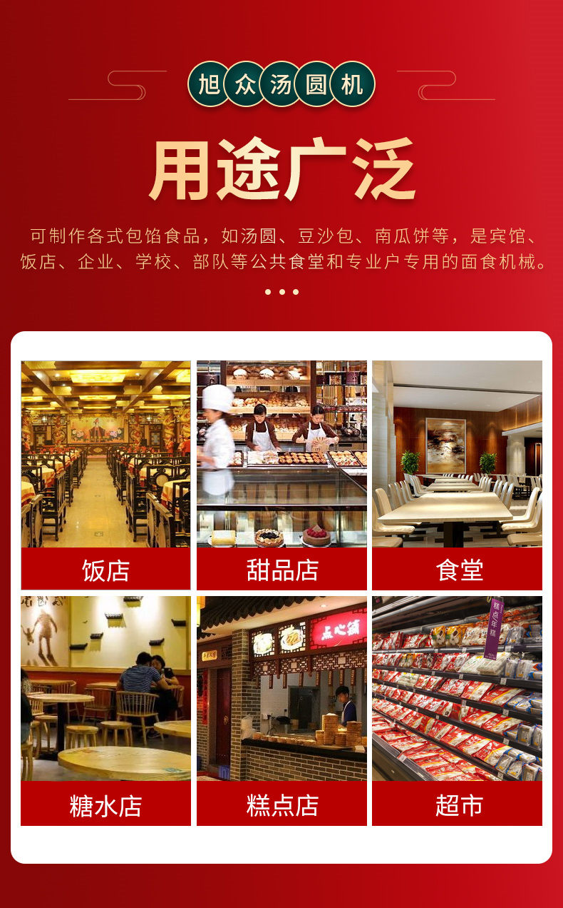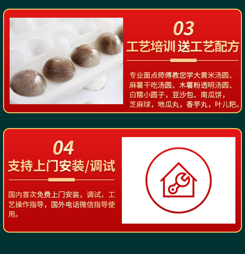 4000C湯圓機,多功能湯圓機,運行穩定、時產量高、大小可調。制品多樣性生產各種大小規格不同的有餡湯圓,無餡湯圓、豆沙包、南瓜餅,芝麻球,地瓜丸,香芋丸,葉兒粑,青團,粘豆包等。