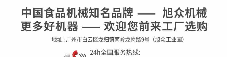 廣州旭眾食品機械有限公司是一家集科研開發,生產設計,營銷服務為一體的現代化生產企業。現代化生產車間,精湛制造技術,所產機械歷經市場重重考驗,不斷贏得海內外客戶的贊譽。