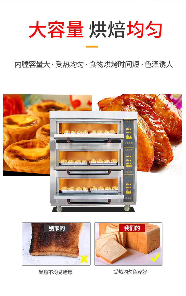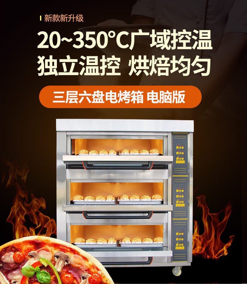 名稱三層六盤電腦版電烤箱 電源380V 功率19.8Kw 產量 尺寸1255*816*1455 mm 重量240KG 規格三層六盤 其他