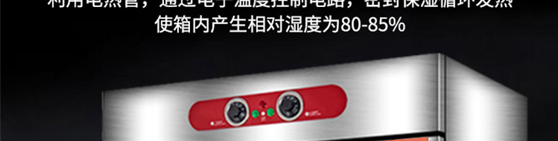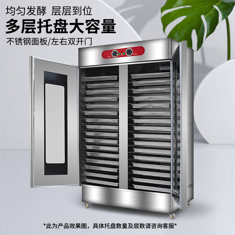 VF系列醒發箱,熱風循環、恒溫發酵。熱氣均勻分布,多盤發酵制作美味一樣到底。恒溫醒發箱完美解決利用電熱管,通過電子溫度控制電路,密封保濕循環發熱使箱內產生相對濕度為80-85%