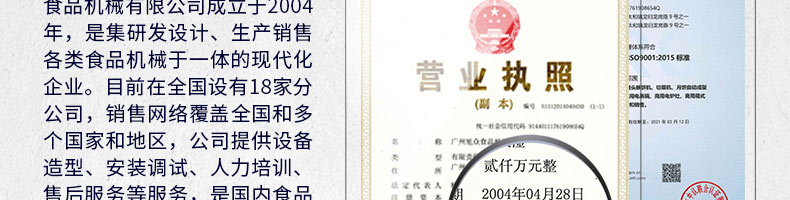 廣州旭眾食品機械有限公司是一家集科研開發,生產設計,營銷服務為一體的現代化生產企業。現代化生產車間,精湛制造技術,所產機械歷經市場重重考驗,不斷贏得海內外客戶的贊譽。