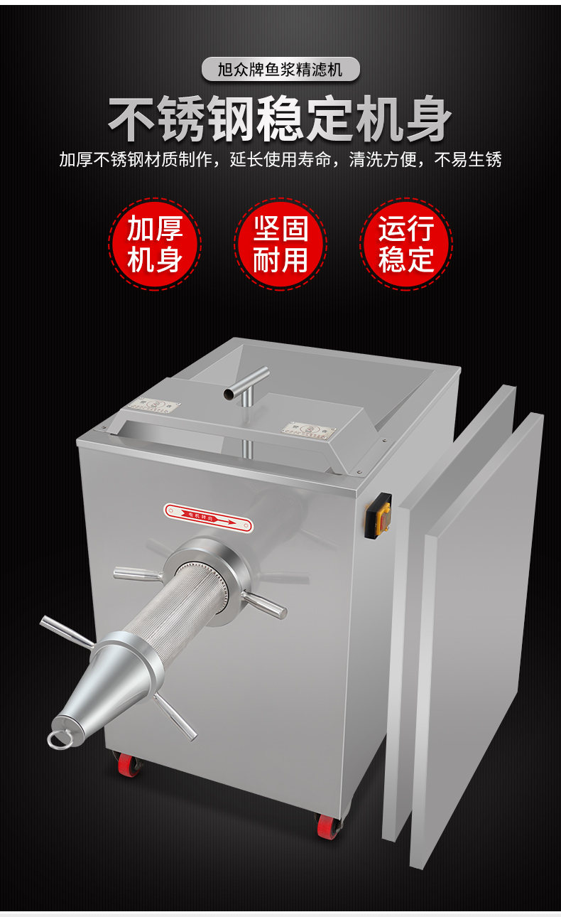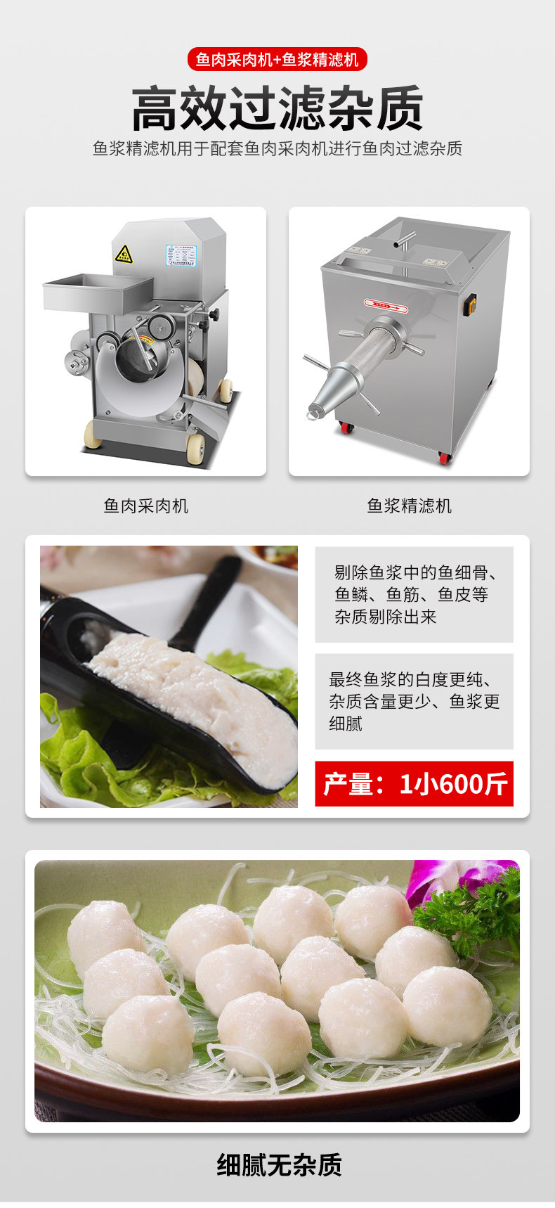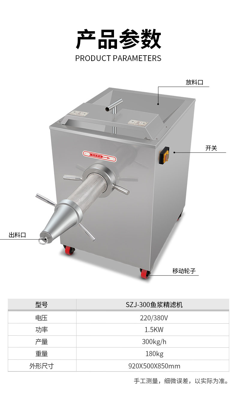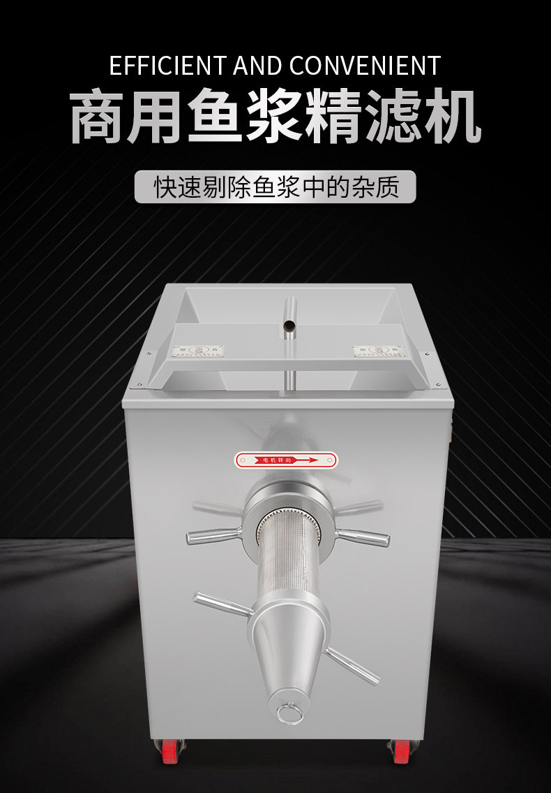SZJ-300魚漿精濾機,商用創業魚漿精濾機,用于配套魚肉采肉機進行魚肉過濾雜質。節省人工開支,人工加工魚漿,效率慢剔除魚細骨,不干凈,有了魚漿精濾機,一人就可以很快制作多種魚漿。