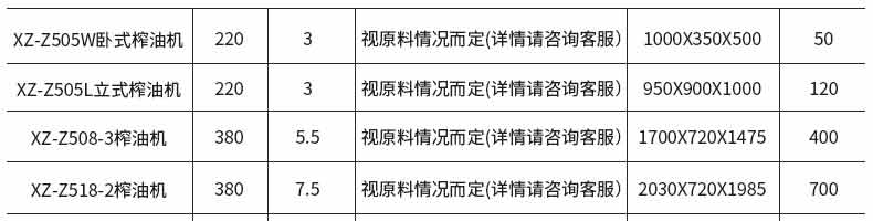 名稱立式50榨油機 電源220/380V(見機器名牌) 功率3~18.5KW 產量 尺寸下拉見產品參數表 重量 規格 其他